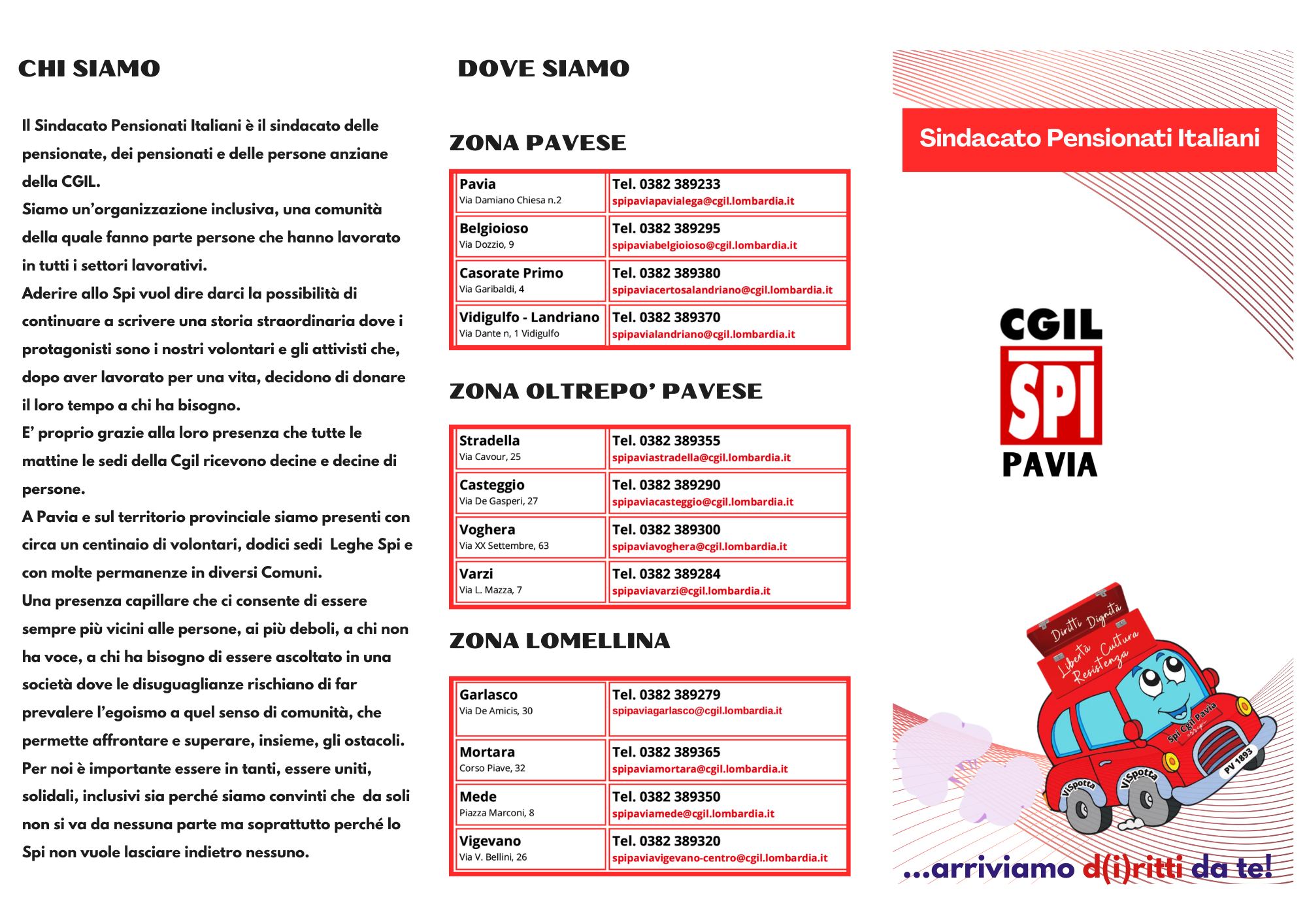 Parte i primi di febbraio la campagna targata SPI CGIL Pavia e intitolata "...arriviamo d(i)ritti da te": un nuovo servizio dedicato a tutte le persone, iscritte o non iscritte al sindacato, che non possono recarsi nelle sedi SPI o CGIL, ma che potrebbero aver bisogno di aiuto.